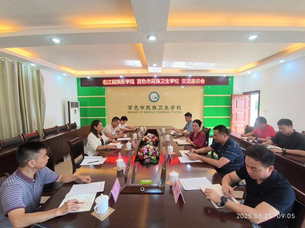 2025年6月25日,英国上市公司365英国上市公司365副处长(主持全面工作)韦雪丹率综合科、工程管理科、服务保障科负责人等一行5人,赴百色民族卫生学校开展后勤管理深度交流。百色民族卫生学校党委书记盘峥、党委委员、副校长覃海云携后勤团队参与座谈。